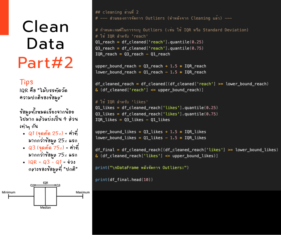 replace()ให้เข้ารูปเข้ารอย! - “ข้อมูลหลุดโลก” (Outliers) ใช้ท่าไม้ตาย IQR Method สแกนหาตัวประหลาด แล้ว “DELETE” ทิ้ง!